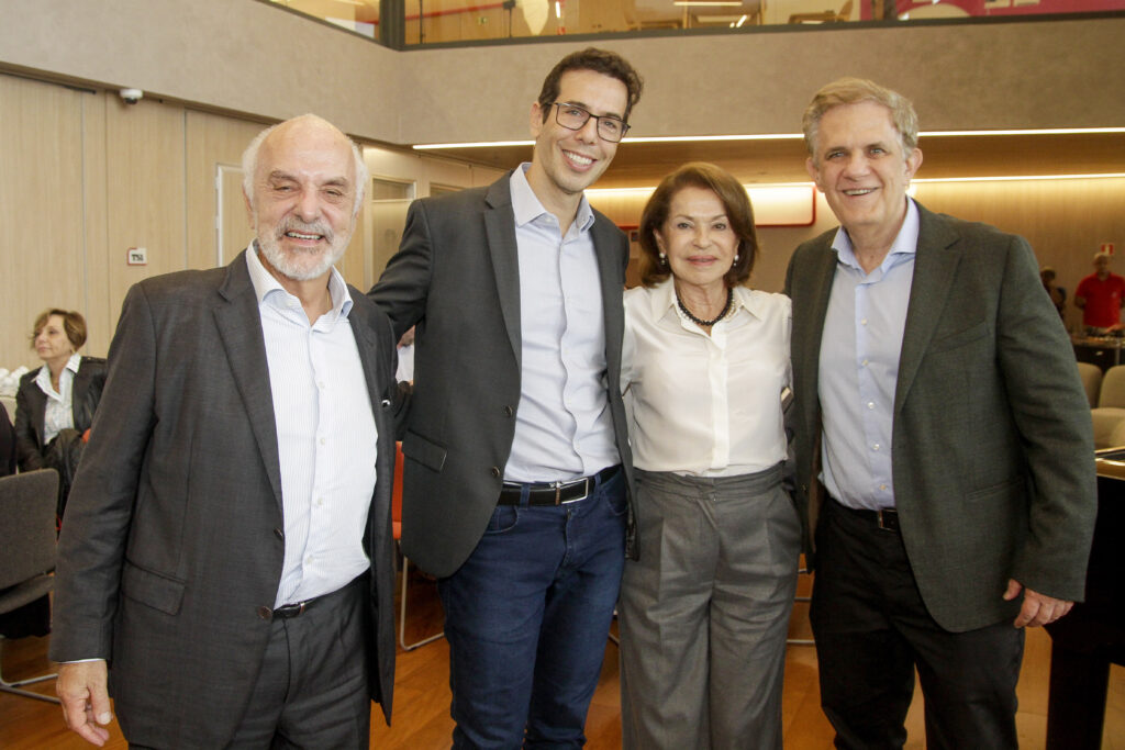 Mauro Aguiar do Colégio Bandeirantes, Renato Feder secretário estadual da educação, Maria Helena Guimarães presidente do Conselho Estadual de Educação e Hubert Alquéres presidente da Academia Paulista de Educação.