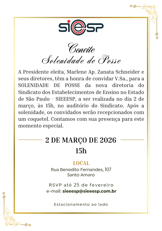 A nova diretoria do Sindicato dos Estabelecimentos de Ensino no Estado de São Paulo (SIEEESP) tomou posse no dia 2 de março de 2026, em solenidade realizada no auditório da entidade, em Santo Amaro, São Paulo. A presidência passa a ser exercida por Marlene Aparecida Zanata Schneider, eleita para conduzir a instituição no novo mandato.
